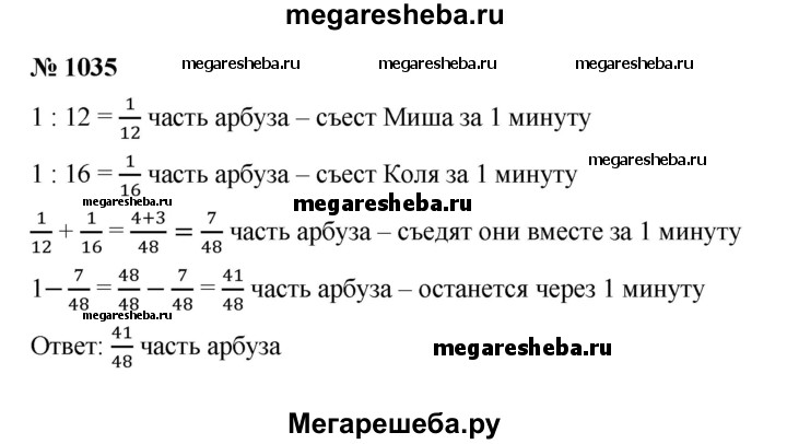 Подробный решебник (ГДЗ) по Математике за 5 (пятый) класс - готовый ответ номер - 1035. Авторы учебника: Мерзляк, Полонский, Якир, Базовый уровень. Издательство: Вентана-граф 2016-2023.
