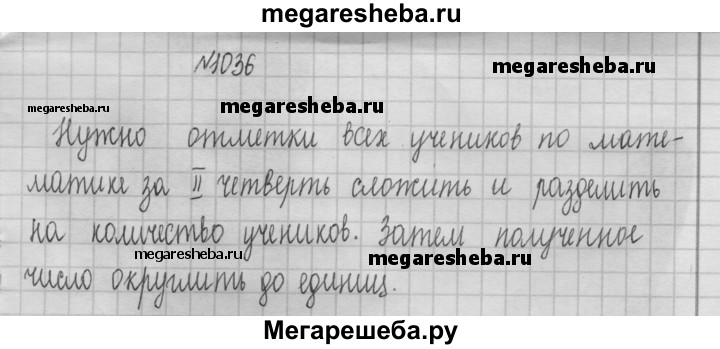 1036. Найдите среднюю оценку учеников вашего класса по математике за II четверть. Ответ округлите до единиц.