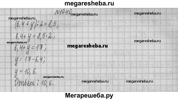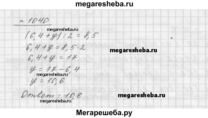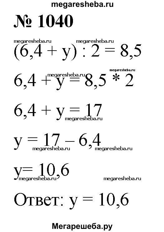 1040. Среднее арифметическое чисел 6,4 и у равно 8,5. Найдите число у.