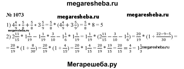 Подробный решебник (ГДЗ) по Математике за 5 (пятый) класс - готовый ответ номер - 1073. Авторы учебника: Мерзляк, Полонский, Якир, Базовый уровень. Издательство: Вентана-граф 2016-2023.