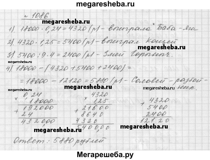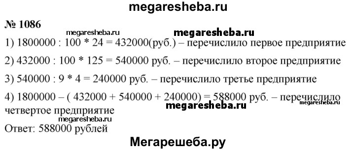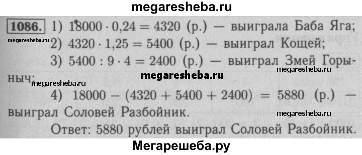 Подробный решебник (ГДЗ) по Математике за 5 (пятый) класс - готовый ответ номер - 1086. Авторы учебника: Мерзляк, Полонский, Якир, Базовый уровень. Издательство: Вентана-граф 2016-2023.