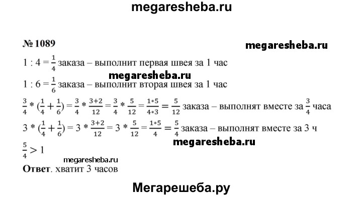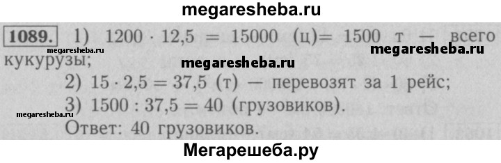 Подробный решебник (ГДЗ) по Математике за 5 (пятый) класс - готовый ответ номер - 1089. Авторы учебника: Мерзляк, Полонский, Якир, Базовый уровень. Издательство: Вентана-граф 2016-2023.
