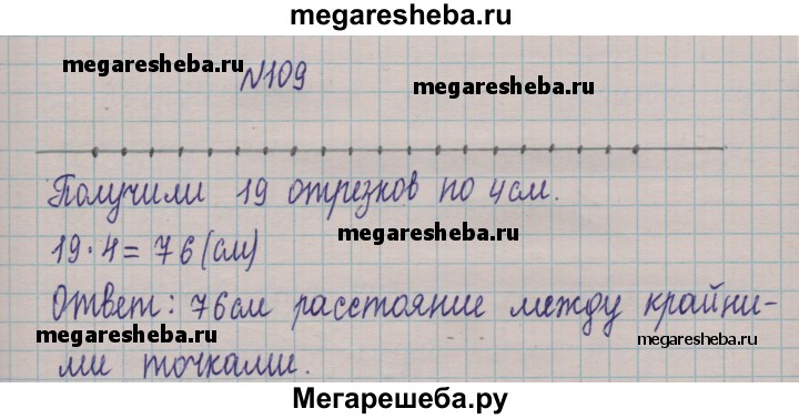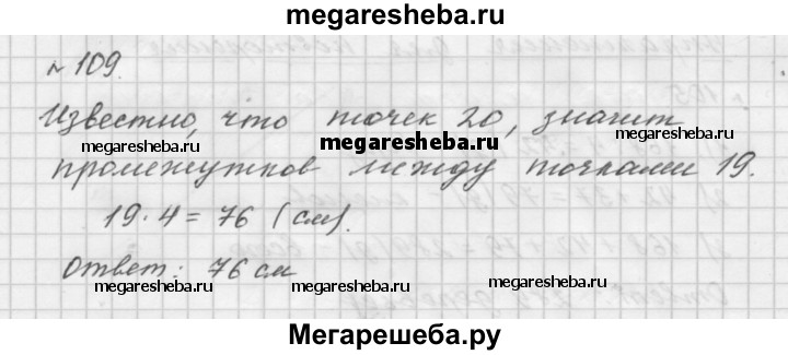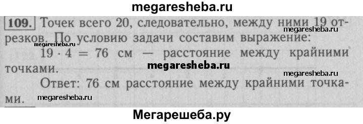 109. На прямой отметили 20 точек так, что расстояние между любыми двумя соседними точками равно 4 см. Найдите расстояние между крайними точками.
