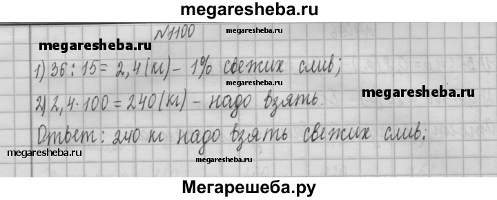 1100. Масса сушёных слив составляет 15 % массы свежих. Сколько надо взять свежих слив, чтобы получить 36 кг сушёных?