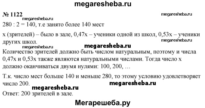 1122. Для просмотра кинофильма в зрительном зале собрались ученики нескольких школ. Оказалось, что ученики одной из школ составляют 47 % количества зрителей. Сколько всего зрителей было в зале, если в нём 280 мест и более половины мест было занято?