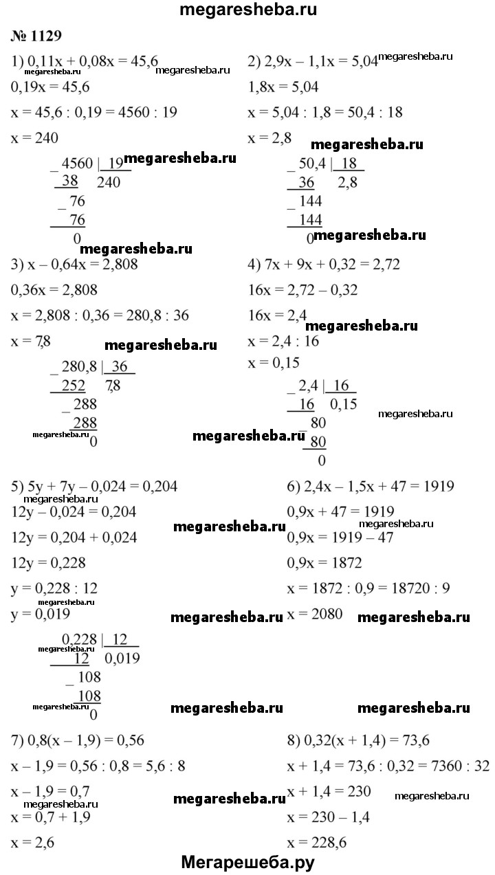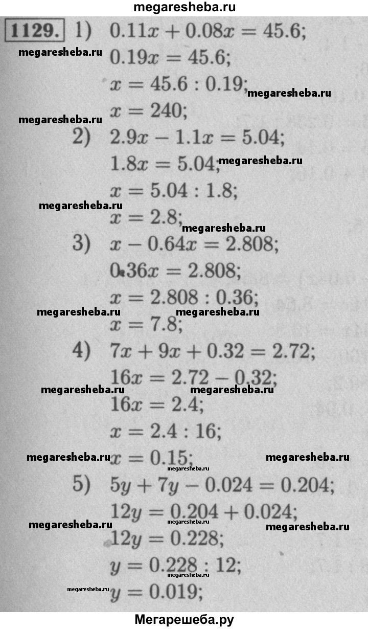 Подробный решебник (ГДЗ) по Математике за 5 (пятый) класс - готовый ответ номер - 1129. Авторы учебника: Мерзляк, Полонский, Якир, Базовый уровень. Издательство: Вентана-граф 2016-2023.