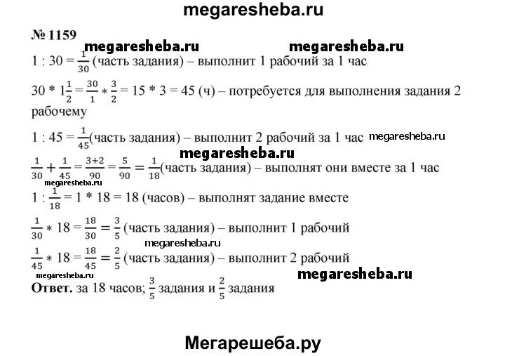 Подробный решебник (ГДЗ) по Математике за 5 (пятый) класс - готовый ответ номер - 1159. Авторы учебника: Мерзляк, Полонский, Якир, Базовый уровень. Издательство: Вентана-граф 2016-2023.