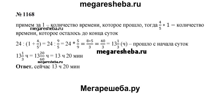 Подробный решебник (ГДЗ) по Математике за 5 (пятый) класс - готовый ответ номер - 1168. Авторы учебника: Мерзляк, Полонский, Якир, Базовый уровень. Издательство: Вентана-граф 2016-2023.