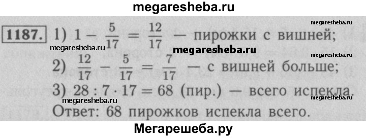 Подробный решебник (ГДЗ) по Математике за 5 (пятый) класс - готовый ответ номер - 1187. Авторы учебника: Мерзляк, Полонский, Якир, Базовый уровень. Издательство: Вентана-граф 2016-2023.