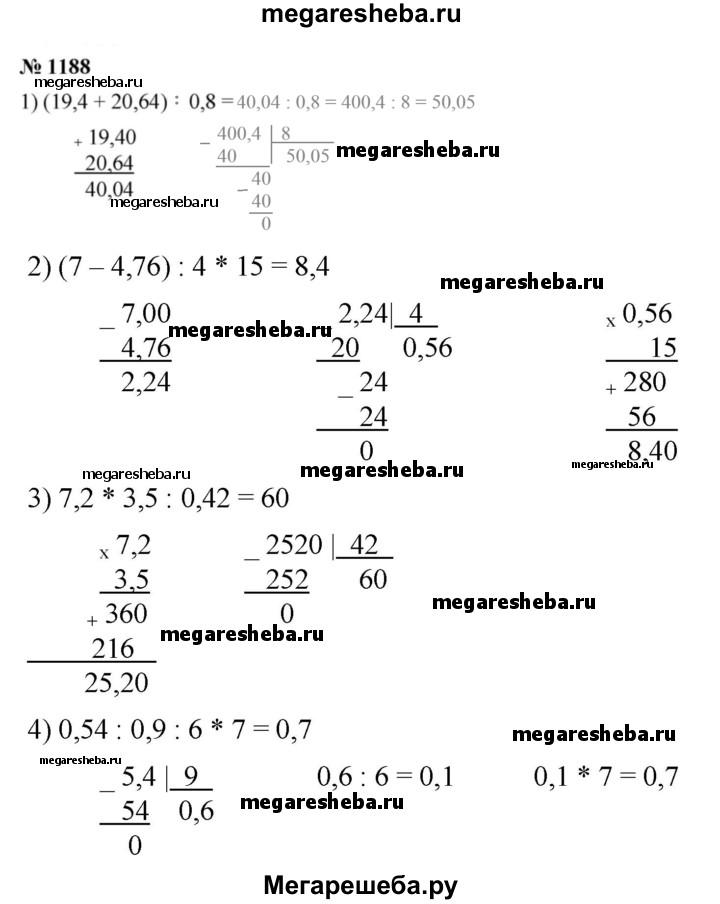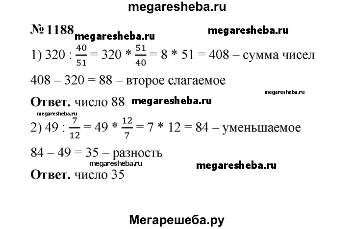 Гдз по математике за 5 класс Мерзляк, Полонский, Якир ответ на номер № 1188
