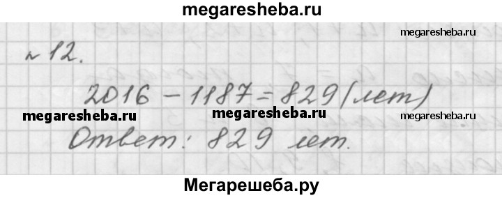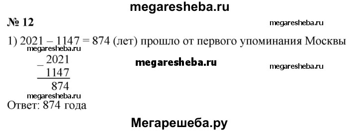 12. Первое летописное упоминание о Москве встречается в Ипатьевской летописи в 1187 г. Сколько лет прошло от первого летописного упоминания Москвы? Выполните действия: