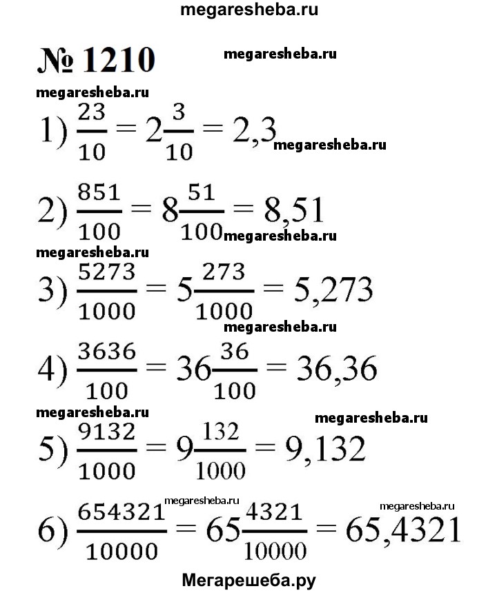Подробный решебник (ГДЗ) по Математике за 5 (пятый) класс - готовый ответ номер - 1210. Авторы учебника: Мерзляк, Полонский, Якир, Базовый уровень. Издательство: Вентана-граф 2016-2023.