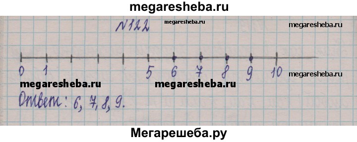 122. Начертите координатный луч и отметьте на нём все натуральные числа, которые больше 5 и меньше 10.