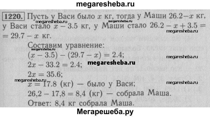 Подробный решебник (ГДЗ) по Математике за 5 (пятый) класс - готовый ответ номер - 1220. Авторы учебника: Мерзляк, Полонский, Якир, Базовый уровень. Издательство: Вентана-граф 2016-2023.