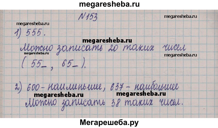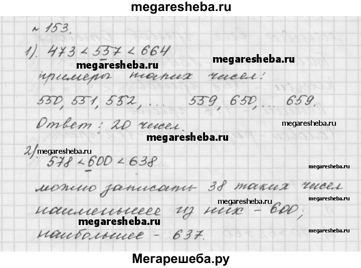 153. 1) Запишите какое-либо натуральное число, которое больше 473 и меньше 664, содержащее цифру 5 в разряде десятков. Сколько таких чисел можно написать? 2) Запишите какое-либо натуральное число, которое больше 578, но меньше 638, содержащее цифру 6 в разряде сотен. Сколько таких чисел можно написать? Запишите наименьшее и наибольшее из таких чисел.