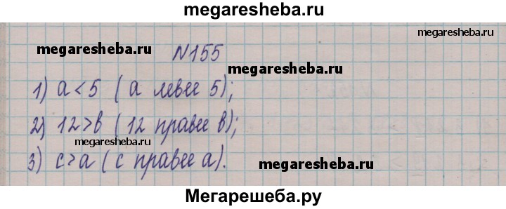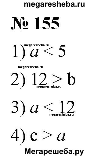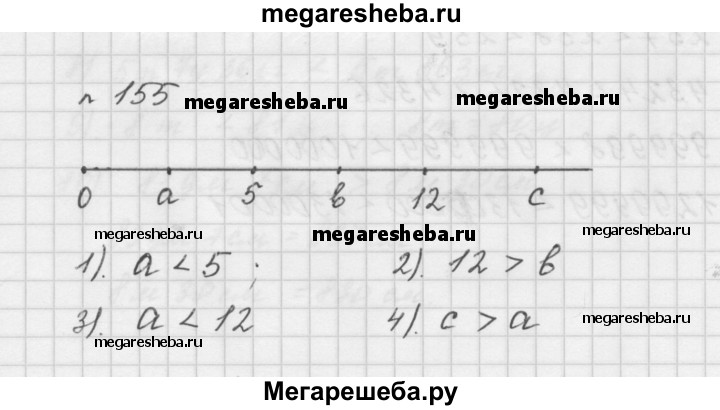 155. На координатном луче отметили числа 5, 12, а, b и с (рис. 64). Сравните: 1) а и 5; 2) 12 и b; 3) а и 12; 4) с и a.