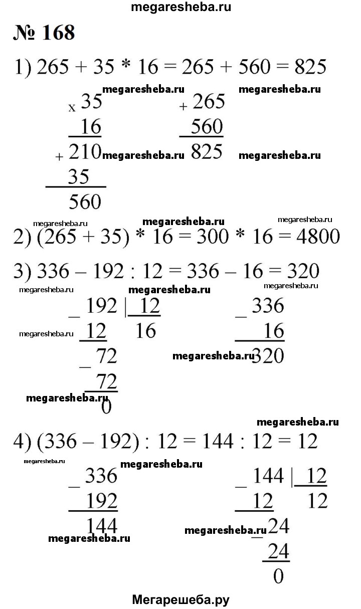 Подробный решебник (ГДЗ) по Математике за 5 (пятый) класс - готовый ответ номер - 168. Авторы учебника: Мерзляк, Полонский, Якир, Базовый уровень. Издательство: Вентана-граф 2016-2023.