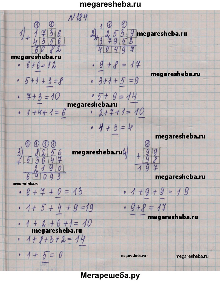184. Вместо звёздочек поставьте цифры так, чтобы сложение было выполнено верно: