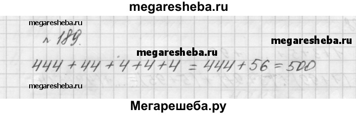 189. В записи 4 4 4 4 4 4 4 4 поставьте между некоторыми цифрами знак «+» так, чтобы получилось выражение, значение которого равно 500.