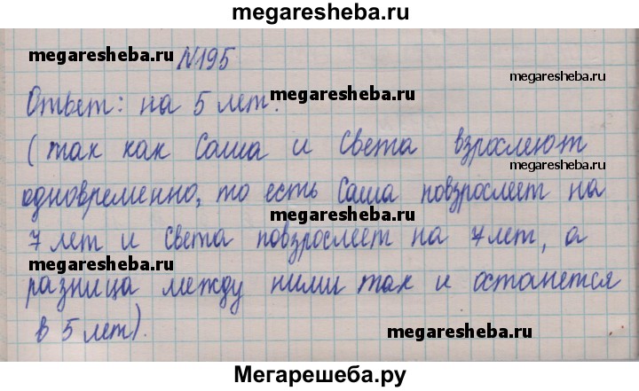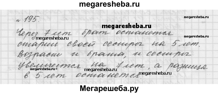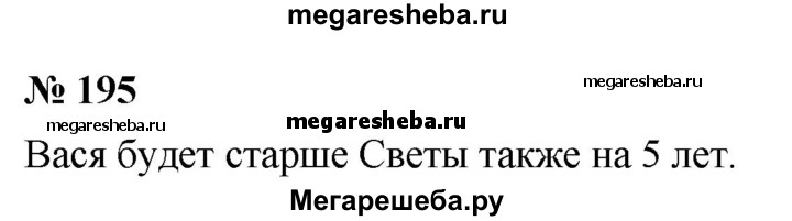 195. Вася старше своей сестры Светы на 5 лет. На сколько лет он будет старше Светы через 7 лет?