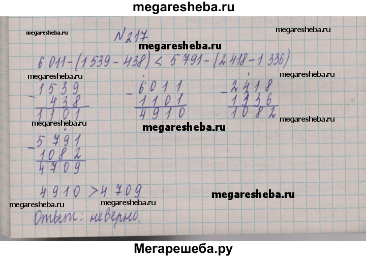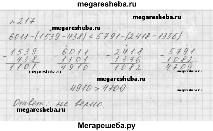 217. Проверьте, верно ли неравенство: 6 011 - (1 539 - 438) < 5 791 - (2 418 - 1 336).