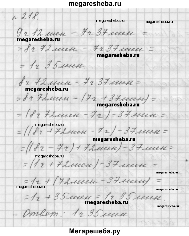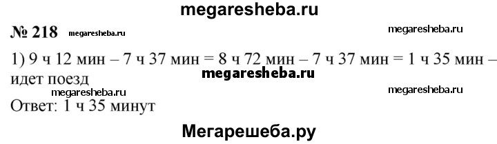 218. Поезд отправляется от станции А в 7 ч 37 мин и в тот же день прибывает на станцию В в 9 ч 12 мин. Сколько времени поезд едет от станции А до станции В?
