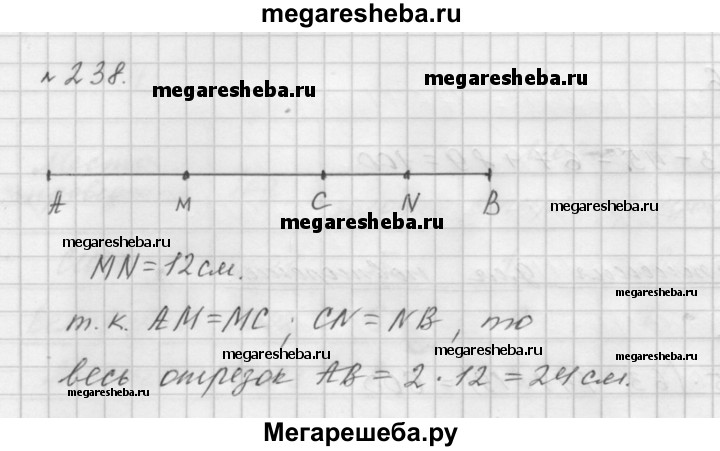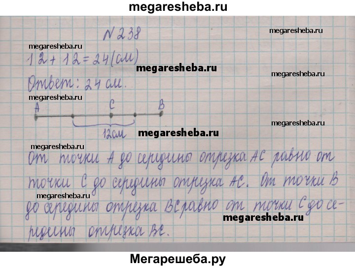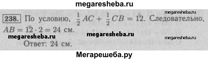 238. На отрезке АВ отметили точку С. Расстояние между серединами отрезков АС и ВС составляет 12 см. Какова длина отрезка АВ?