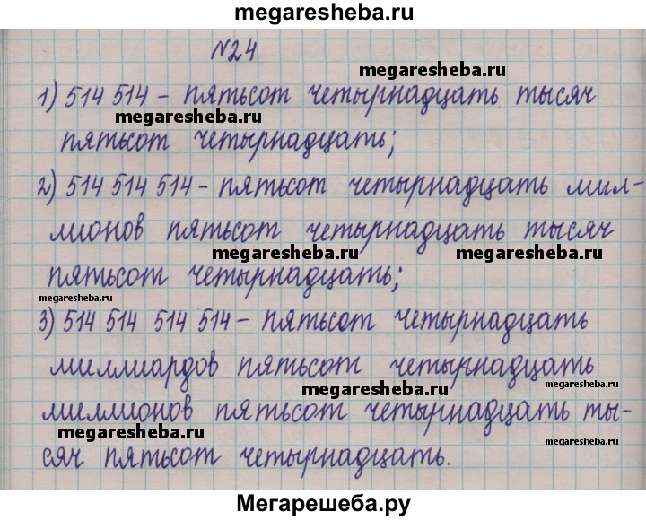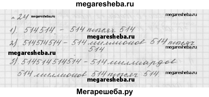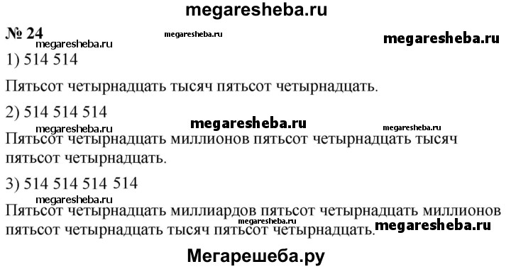 24. Запишите и прочитайте число, которое образуется, если записать число 514 подряд: 1) два раза; 2) три раза; 3) четыре раза.