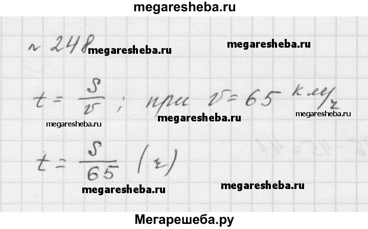 248. Автомобиль проехал s км со скоростью 65 км/ч. Сколько времени автомобиль был в пути?