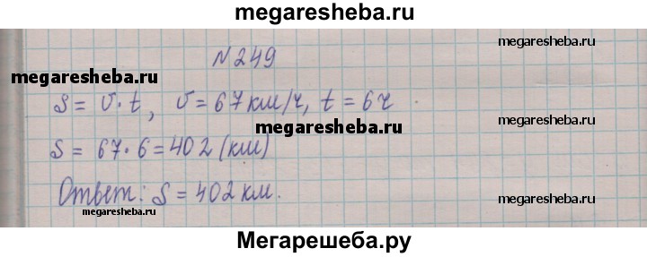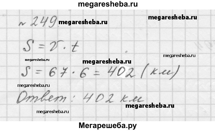 249. Найдите по формуле пути расстояние, которое пройдёт поезд за 6 ч, двигаясь со скоростью 67 км/ч.