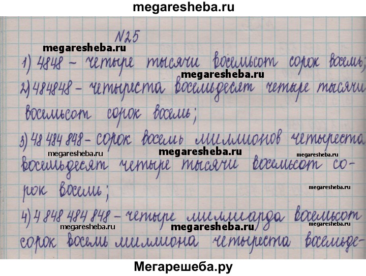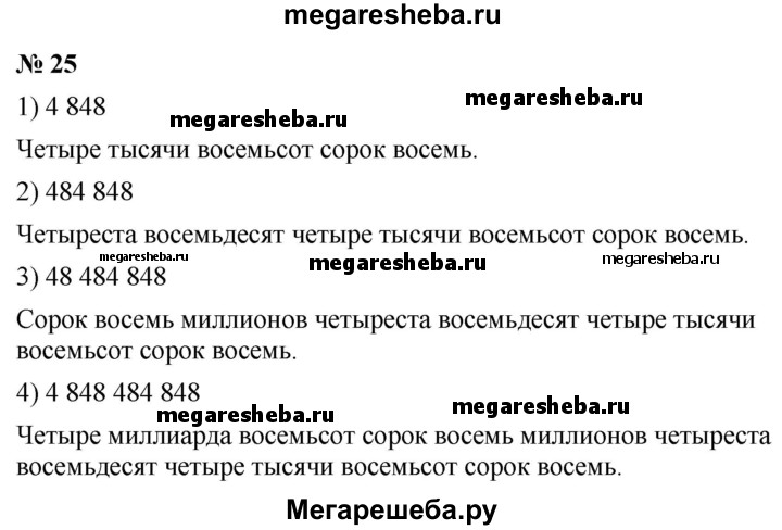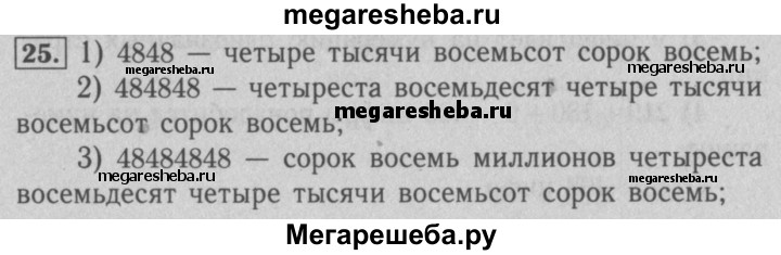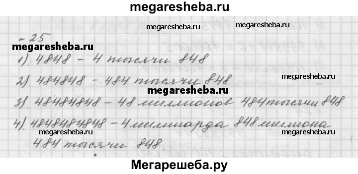 25. Запишите и прочитайте число, которое образуется, если записать число 48 подряд: 1) два раза; 2) три раза; 3) четыре раза; 4) пять раз.