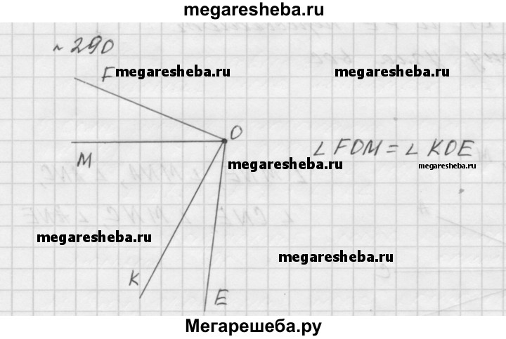 290. На рисунке 81 углы FOK и МОЕ равны. Какие ещё углы, изображённые на этом рисунке, равны?