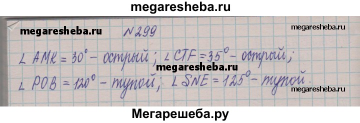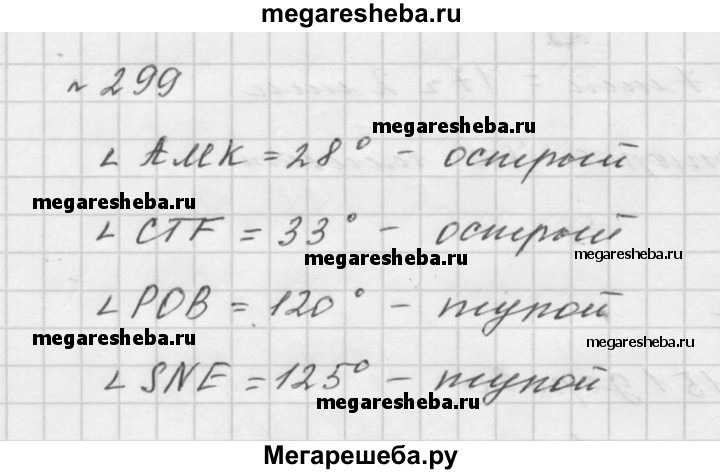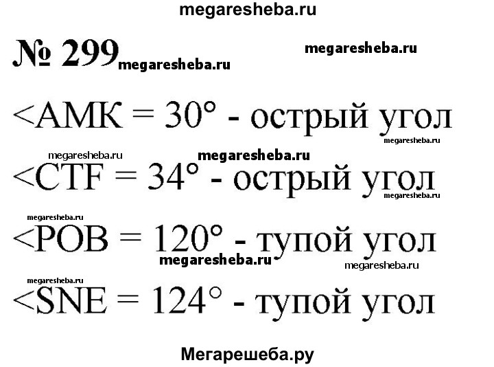299. Найдите, пользуясь транспортиром, градусные меры углов, изображённых на рисунке 94. Определите вид каждого угла.