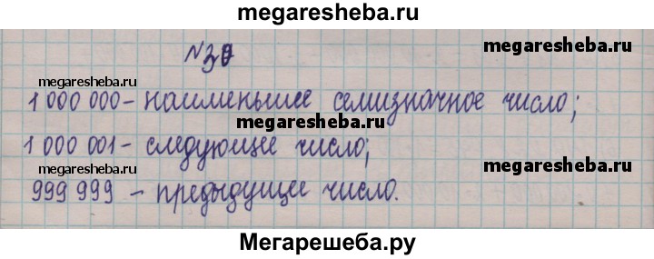 30. Запишите наименьшее семизначное число, а также следующее и предыдущее числа.