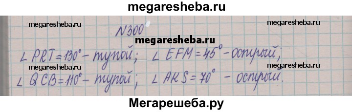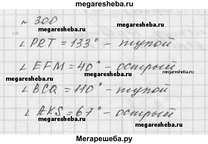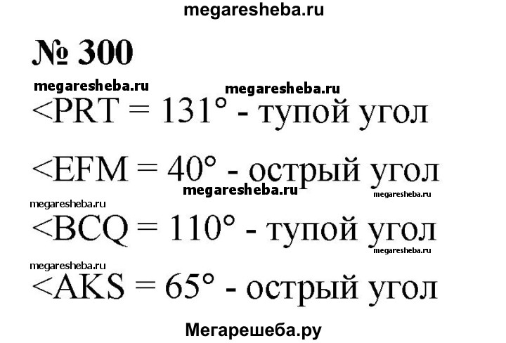 300. Найдите, пользуясь транспортиром, градусные меры углов, изображённых на рисунке 95. Определите вид каждого угла.