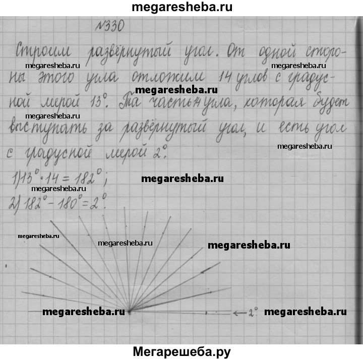 330. Как, используя шаблон угла, градусная мера которого 13°, построить угол, градусная мера которого равна 2°?