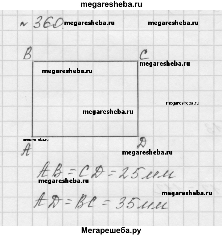 360. Постройте прямоугольник, соседние стороны которого равны 25 мм и 35 мм.