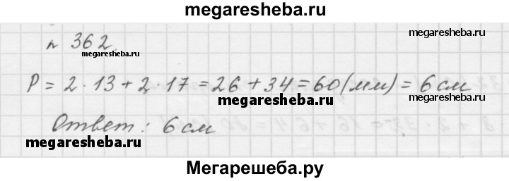 362. Найдите периметр прямоугольника, соседние стороны которого равны 13 мм и 17 мм.