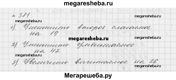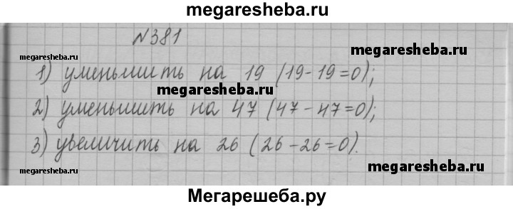 381. 1) Одно из слагаемых увеличили на 19. Как следует изменить второе слагаемое, чтобы сумма не изменилась? 2) Вычитаемое уменьшили на 47. Как следует изменить уменьшаемое, чтобы разность не изменилась? 3) Уменьшаемое увеличили на 26. Как следует изменить вычитаемое, чтобы разность не изменилась?