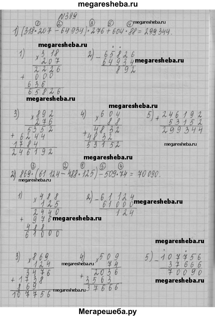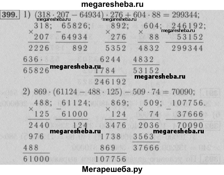 399.Найдите значение выражения: 1) (318 • 207 - 64 934) • 276 + 604 • 88; 2) 869 • (61 124 - 488 • 125) - 509 • 74.