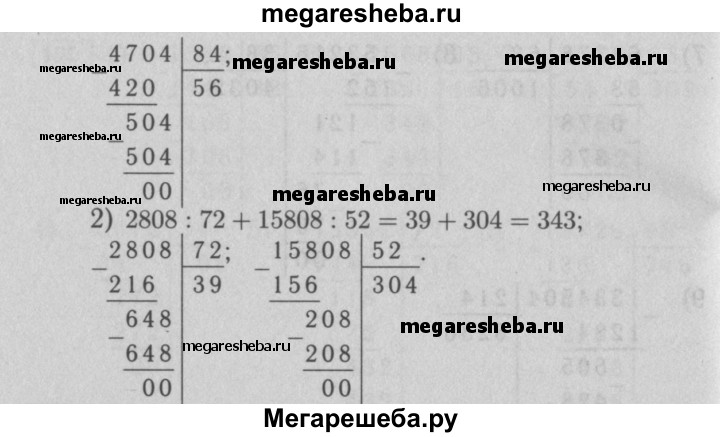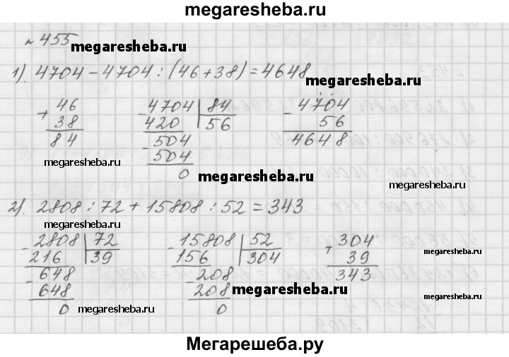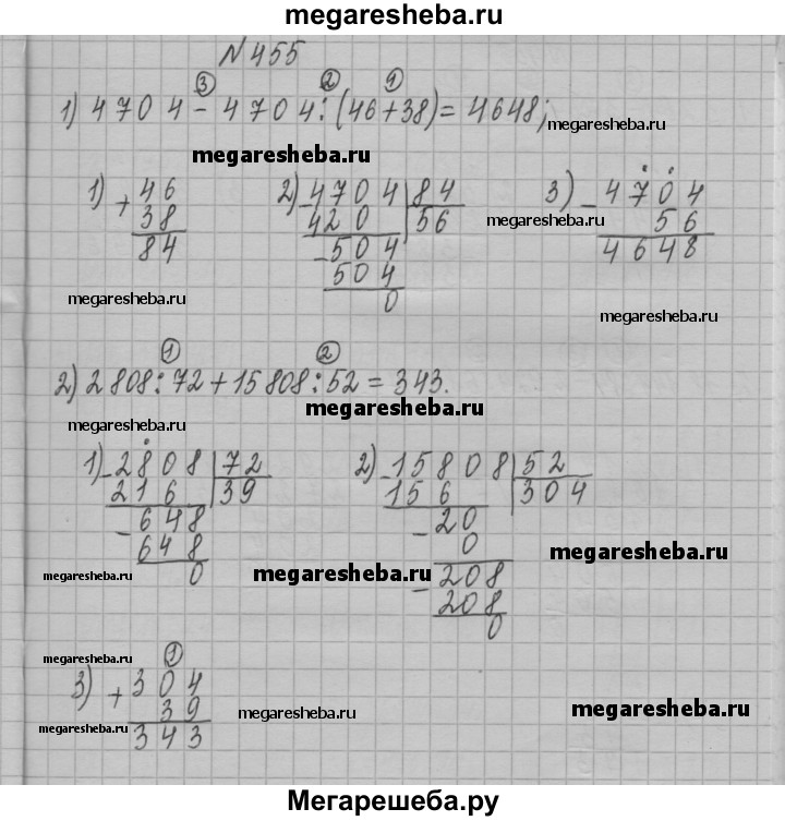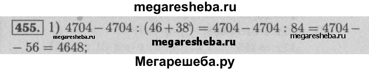 455. Найдите значение выражения: 1) 4 704-4 704 : (46 + 38); 2) 2 808 : 72 + 15 808 : 52.