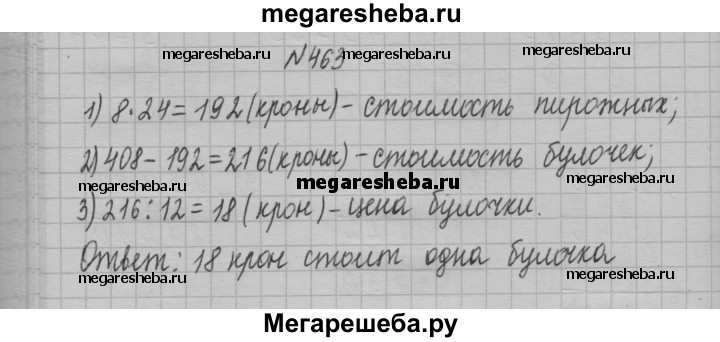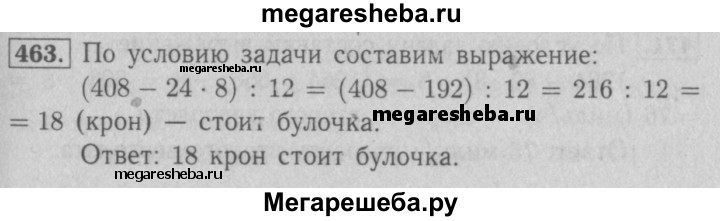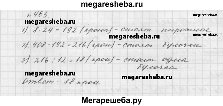 463. Малыш купил для Карлсона 8 пирожных и 12 булочек с повидлом, заплатив за всю покупку 408 крон. Одно пирожное стоит 24 кроны. Какова цена одной булочки?
