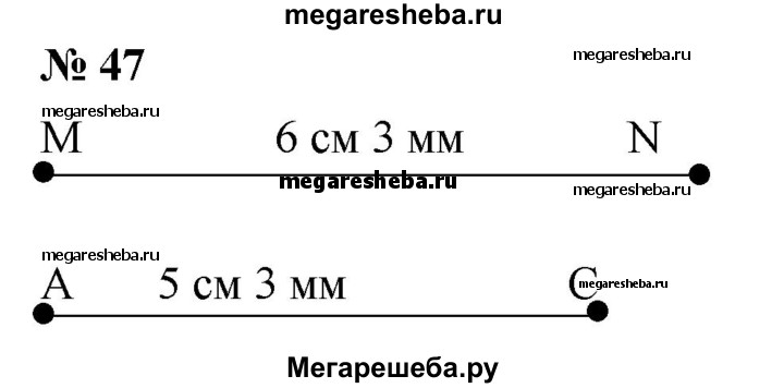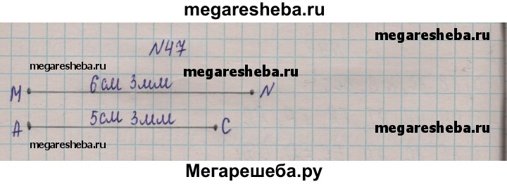 47. Начертите отрезки MN и АС так, чтобы MN = 6 см 3 мм, АС = 5 см 3 мм.