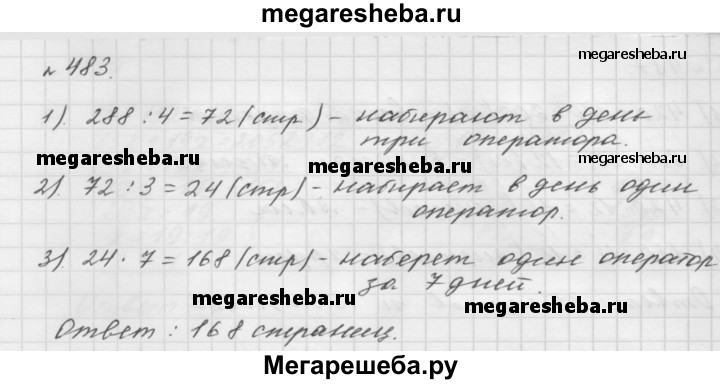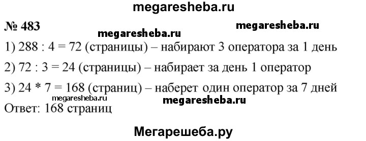 483. За четыре дня работы три оператора набрали на компьютере вместе 288 страниц. Сколько страниц наберёт один оператор за 7 дней, если у них одинаковая производительность труда?