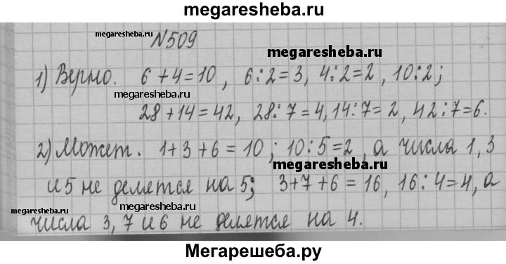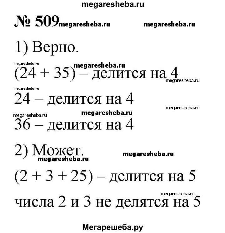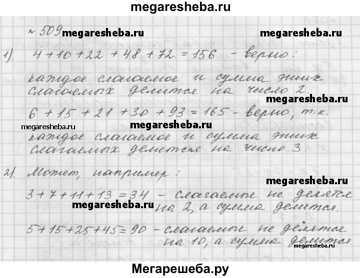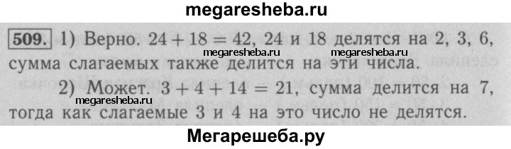 509. 1) Верно ли, что если каждое слагаемое делится на некоторое число, то и сумма этих слагаемых делится на это число? Проиллюстрируйте свой ответ примерами. 2) Может ли сумма нескольких слагаемых делиться на некоторое число, если каждое слагаемое не делится на это число? Проиллюстрируйте свой ответ примерами.
