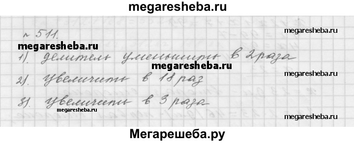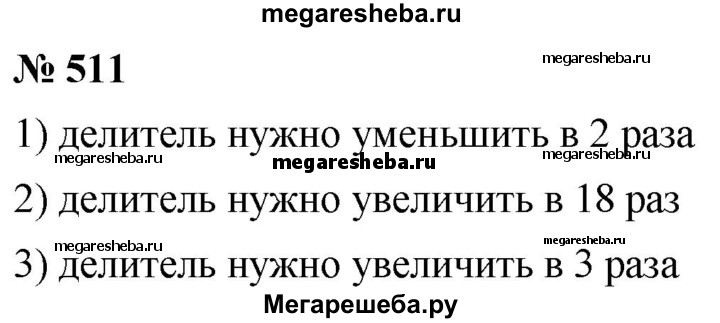 511. Делимое увеличили в 3 раза. Как надо изменить делитель, чтобы частное: 1) увеличилось в 6 раз; 2) уменьшилось в 6 раз; 3) не изменилось?