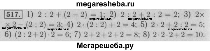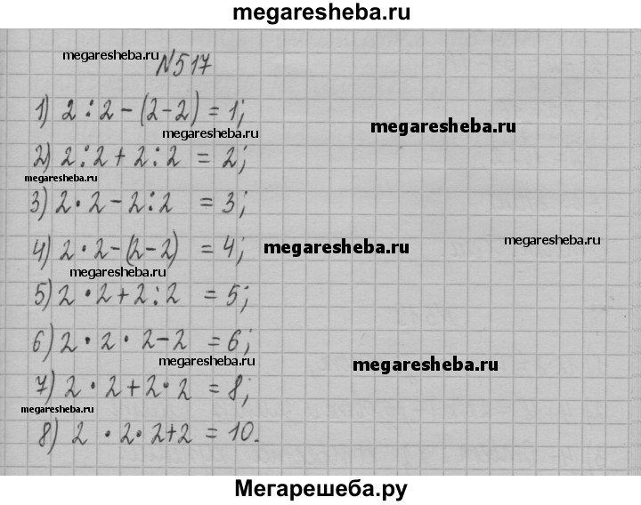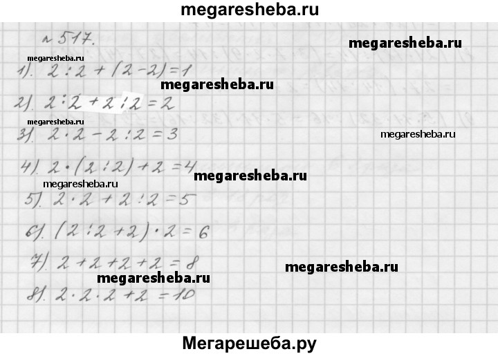 517. Составьте числовое выражение с использованием только знаков четырёх арифметических действий и четырёх цифр 2 так, чтобы значение полученного выражения было равно:
