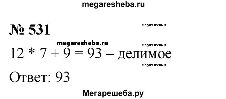 531. Найдите делимое, если делитель равен 12, неполное частное — 7, а остаток — 9.