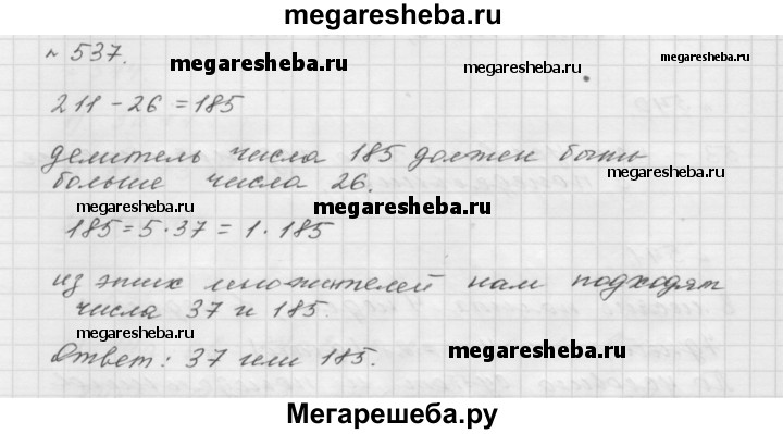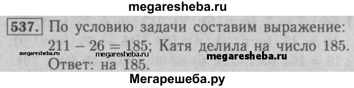537. Катя разделила число 211 на некоторое число и получила в остатке 26. На какое число делила Катя?