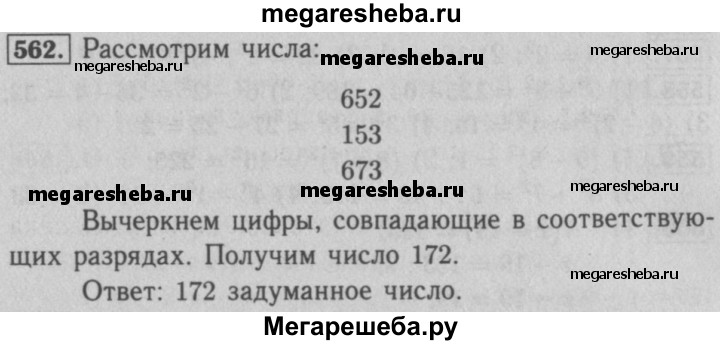 562. Вася задумал трёхзначное число, у которого с каждым из чисел 652, 153 и 673 совпадает один из разрядов, а два других не совпадают. Какое число задумал Вася?